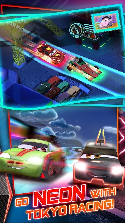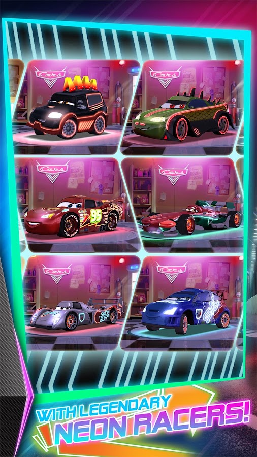 • Unlock all 7 Neon racers -- from Lightning to Francesco -- and light up the tracks with neon lights!